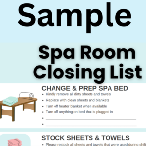 Stay tuned for Part 3 of Success Tips For Working In A Resort Spa. I want to plug my latest PDF you can download for purchase on the Spa Room Closing List. Get all of your employees on the same page as to how to close down the room and make sure everything is cleaned and stocked properly. The link is here: