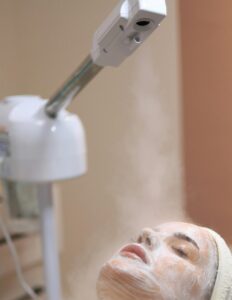 Step 1)  After properly cleansing the skin and performing a form of exfoliation you normally would use a steamer to soften the skin. Some spas have stopped using steamers and they use a type of disincrustation formula to soften the skin.